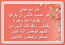 قال تعاله الم 1 أحسب الناس أن يتركوا أن يقولوا آمنا وهم لا يفتنون 2
