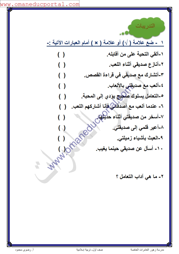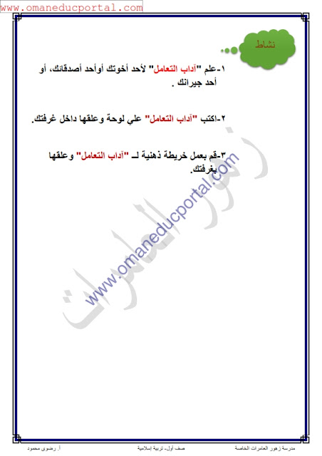 ملخص شرح درس آداب التعامل في التربية الاسلامية للصف الاول الفصل الثاني