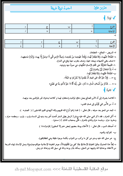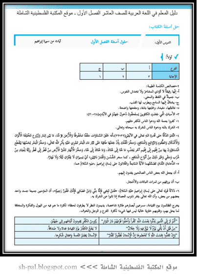 حلول كتاب اللغة العربية للصف العاشر الفصل الأول المكتبة الفلسطينية الشاملة