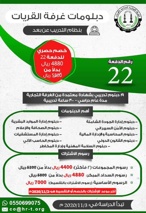 الدبلومات التدريبية الدفعة 22 التدريب الإلكتروني في الغرفة التجارية دبلومات معتمدة و دبلومات عن بعد دبلومات جامعة دبلوم عن بعد