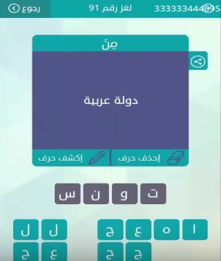 جواب سؤال دولة عربية لغز رقم 91 من لعبة وصلة للمجموعة الحادى عشر صقور الإبدآع
