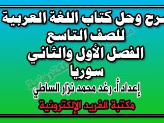 شرح وحل وتطبيقات كتاب اللغة العربية للصف التاسع ـ سوريا 2019 2020 Pdf مكتبة الفريد الإلكترونية