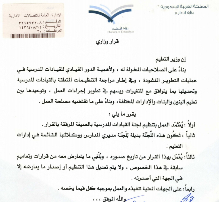 التعليم تعتمد تنظيم تكليف قائدي وقائدات المدارس الأهلية والعالمية على حساب ملاكها بشكل تدريجي