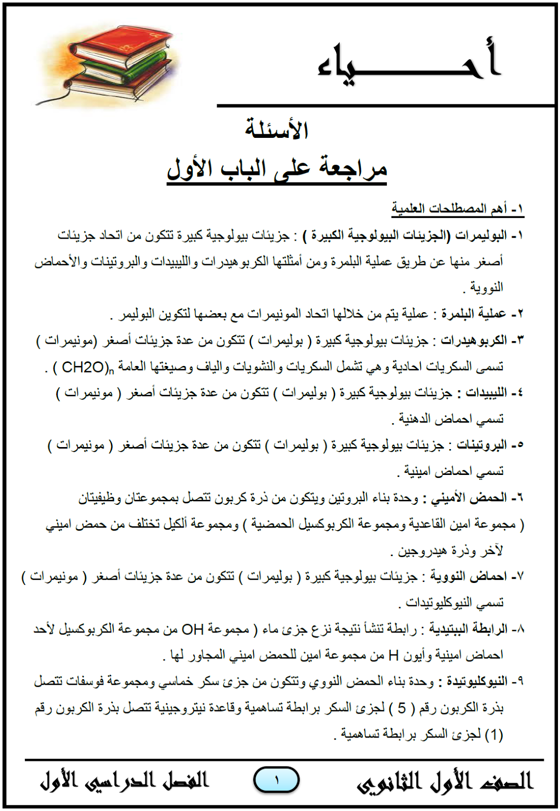 ملخص الاحياء ثاني ثانوي الفصل الاول