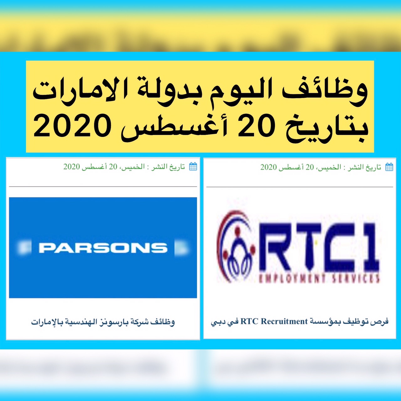 وظائف اليوم بدولة الامارات بتاريخ اليوم 20 أغسطس 2020