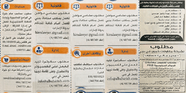 اعلانات وظائف في الامارات منشورة في الصحف الاماراتية اليوم 22 2 2018
