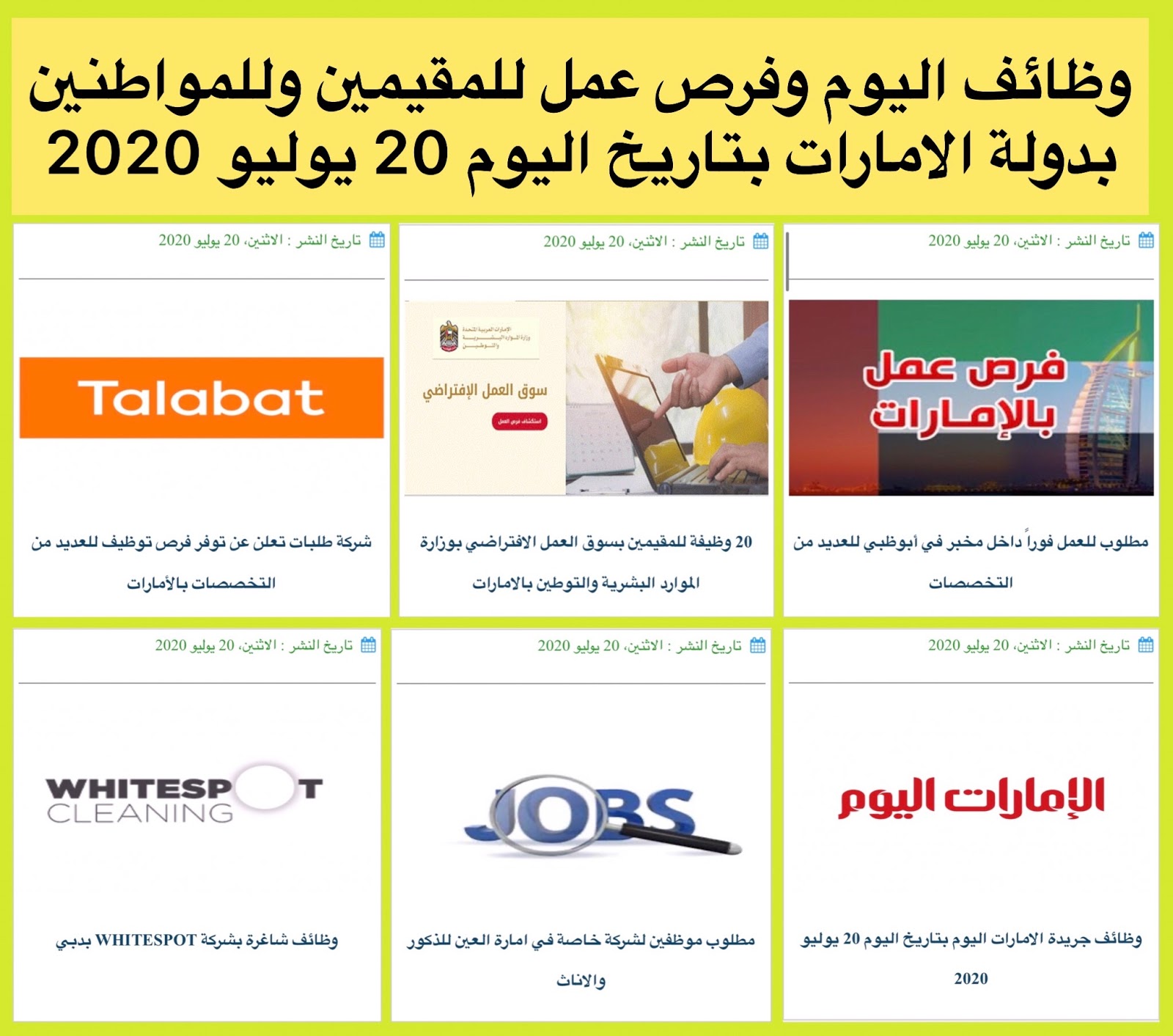 وظائف اليوم وفرص عمل للمقيمين وللمواطنين بدولة الامارات بتاريخ اليوم 20 يوليو 2020