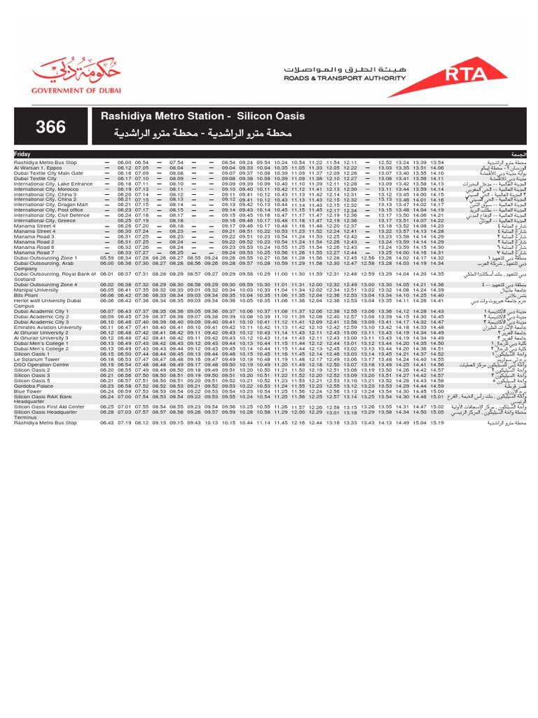 366 Al Rashidiya Metro Station To Diac Silicon Ouasis Dubai Bus Service Timetable Dubai