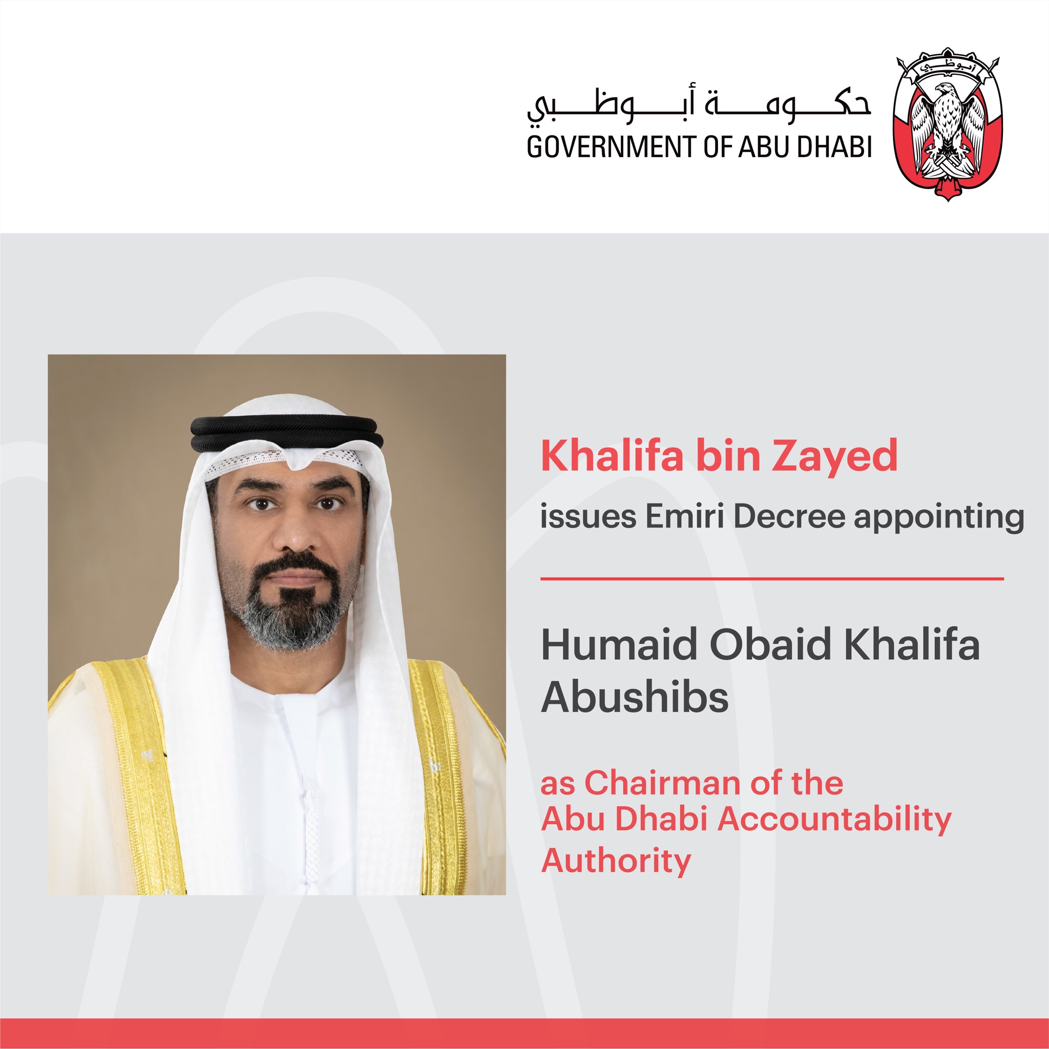 مكتب أبوظبي الإعلامي On Twitter Khalifa Bin Zayed Issues An Emiri Decree Appointing Humaid Obaid Khalifa Abushibs As Chairman Of The Abu Dhabi Accountability Authority Https T Co T8xowdmg9i
