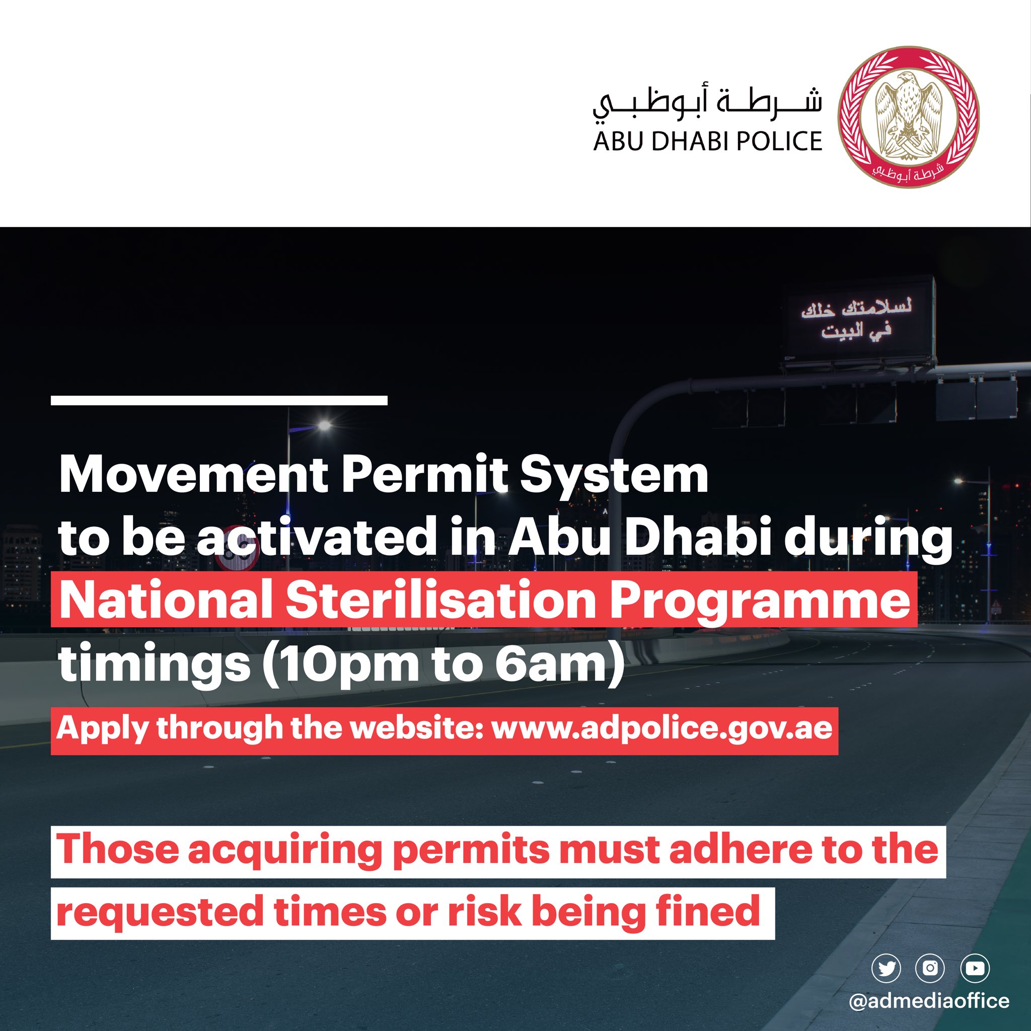 مكتب أبوظبي الإعلامي On Twitter Adpolicehq Is To Start Issuing Movement Permits During Sterilisation Timings 10 Pm To 6 Am Permits Can Be Processed On The Website Https T Co G55r61fjqc Https T Co Ddhltwcev5