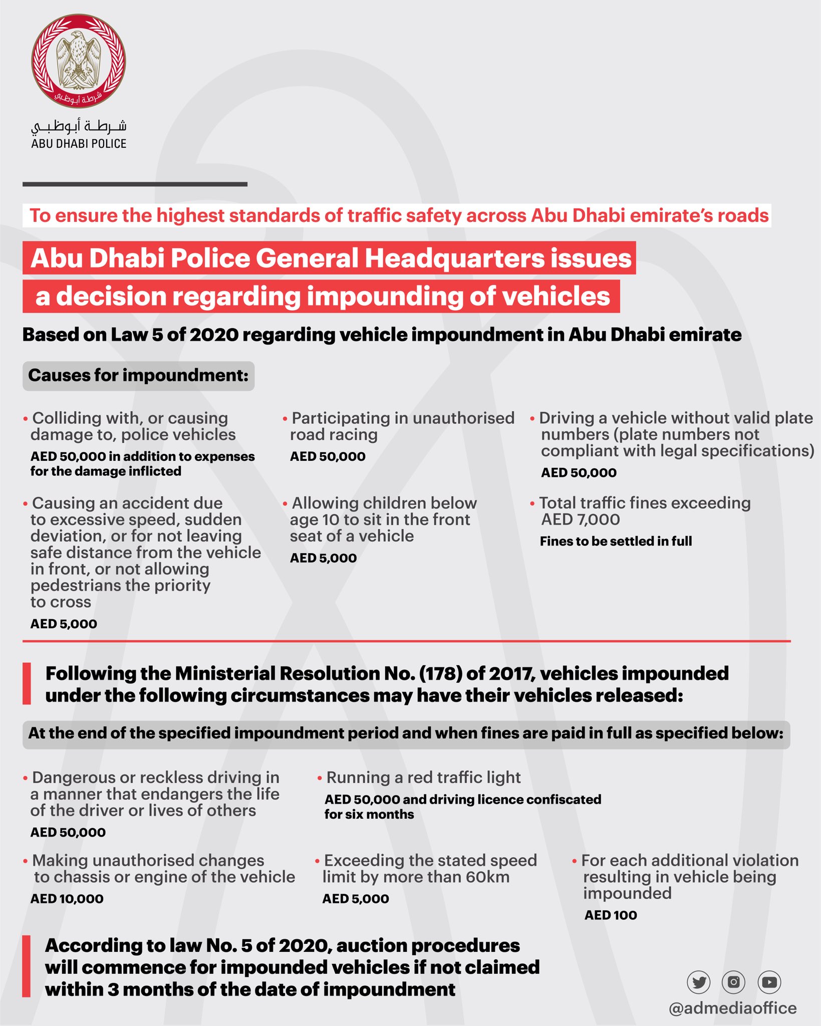مكتب أبوظبي الإعلامي On Twitter Abudhabi Police Issues A Decision Regarding The Impoundment Of Vehicles In The Abu Dhabi The Decision Aims To Ensure That Traffic Safety Across Abudhabi Follows The Highest Road