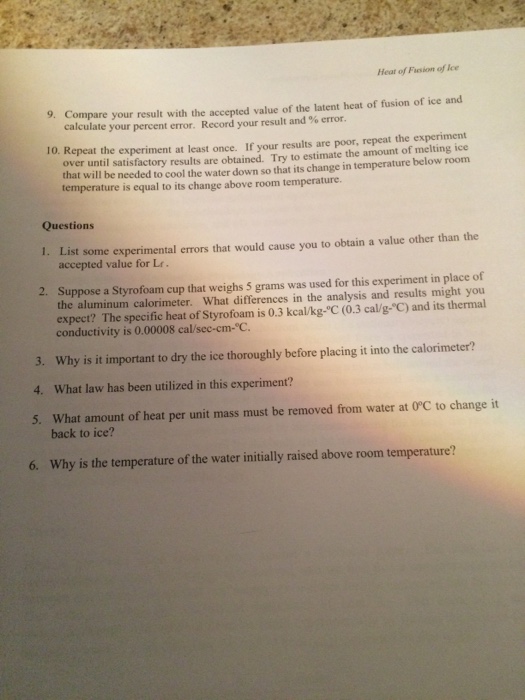 Experiment 2 Latent Heat Of Fusion Of Ice