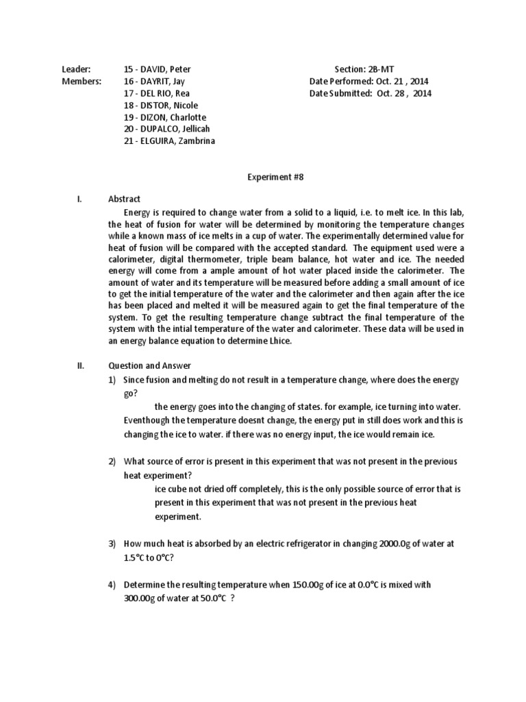 Doc Latent Heat Of Fusion Hannah Tuason Academia Edu