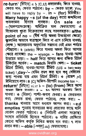 Meaning Of Return With Pronunciation English 2 Bangla English Dictionary